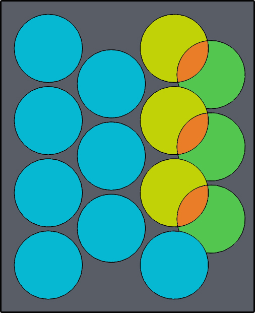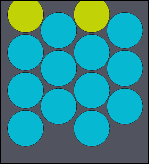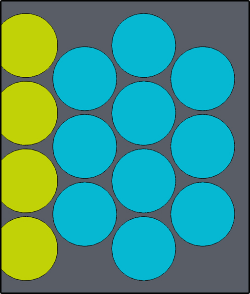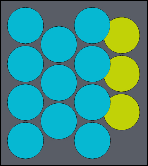 Les poinçons découpent les flans avec un décalage. Cela a pour conséquence de découper des flans incomplets (jaune).