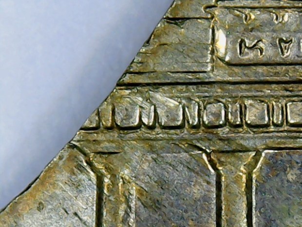 Sur les pièces avec inscriptions en creux sur la couronne, un autre phénomène apparaît :