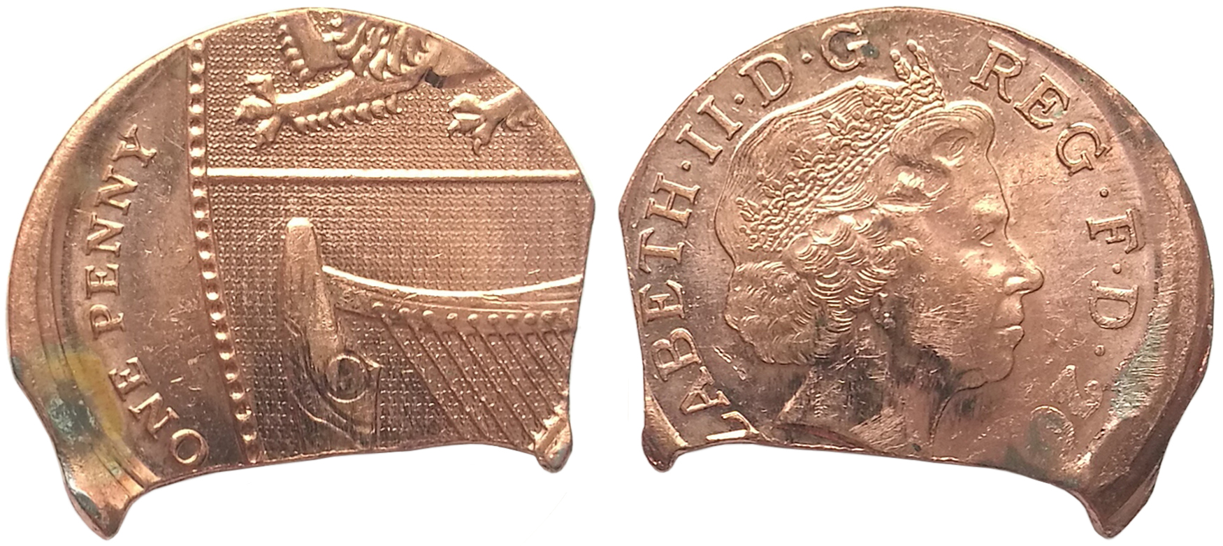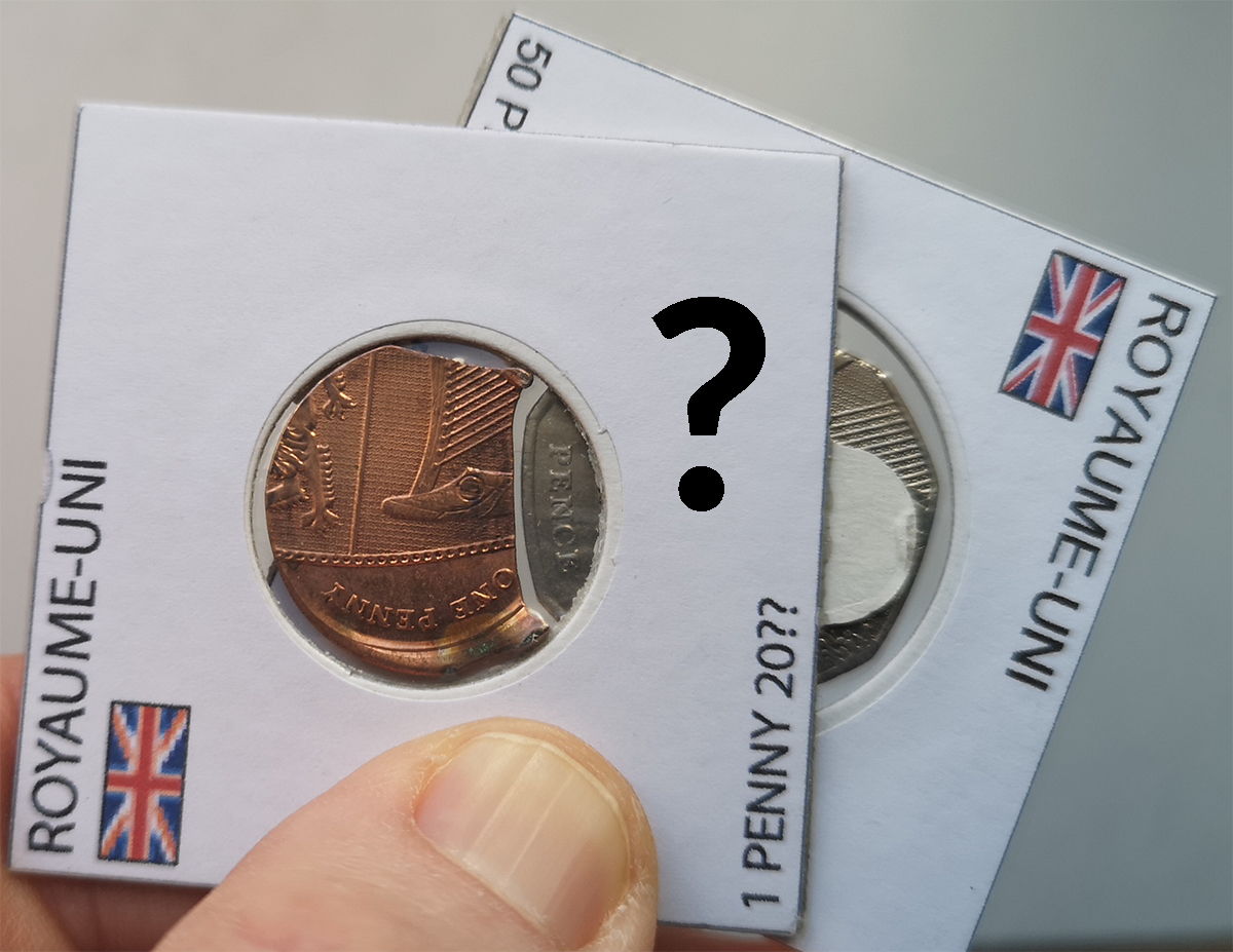 Frappe décentrée + forme de clip 50 pence !