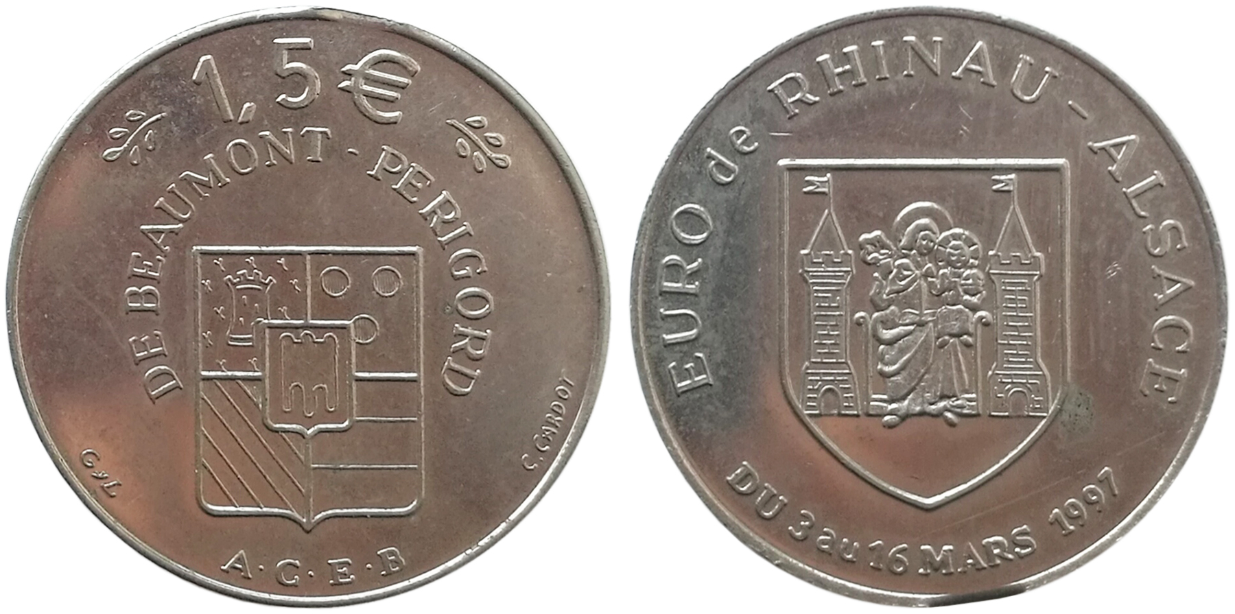 Euros des villes, utilisable du 3 au 16 mars 1997 dans la ville de Beaumont-du-Périgord (24440)